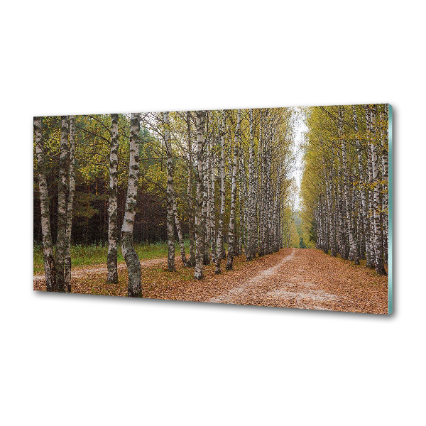 Sklenený panel Alej briez je návrh pre tých, ktorí chcú zmeniť výzdobu svojej kuchyne.