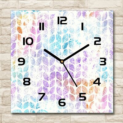 Nástenné štvorcové hodiny Farebné lístky sú zaujímavým spôsobom na spestrenie vašej steny. Tento jedinečný motív priťahuje pozornosť, vzbudzuje záujem a poskytuje miestnosti jedinečný charakter. Sklenené hodiny s potlačou Farebné lístky spájajú prvky moderného dizajnu a nástennej dekorácie s každodennou funkčnosťou.