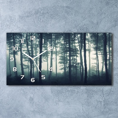 Vodorovné Moderné sklenené hodiny na stenu Les hmla